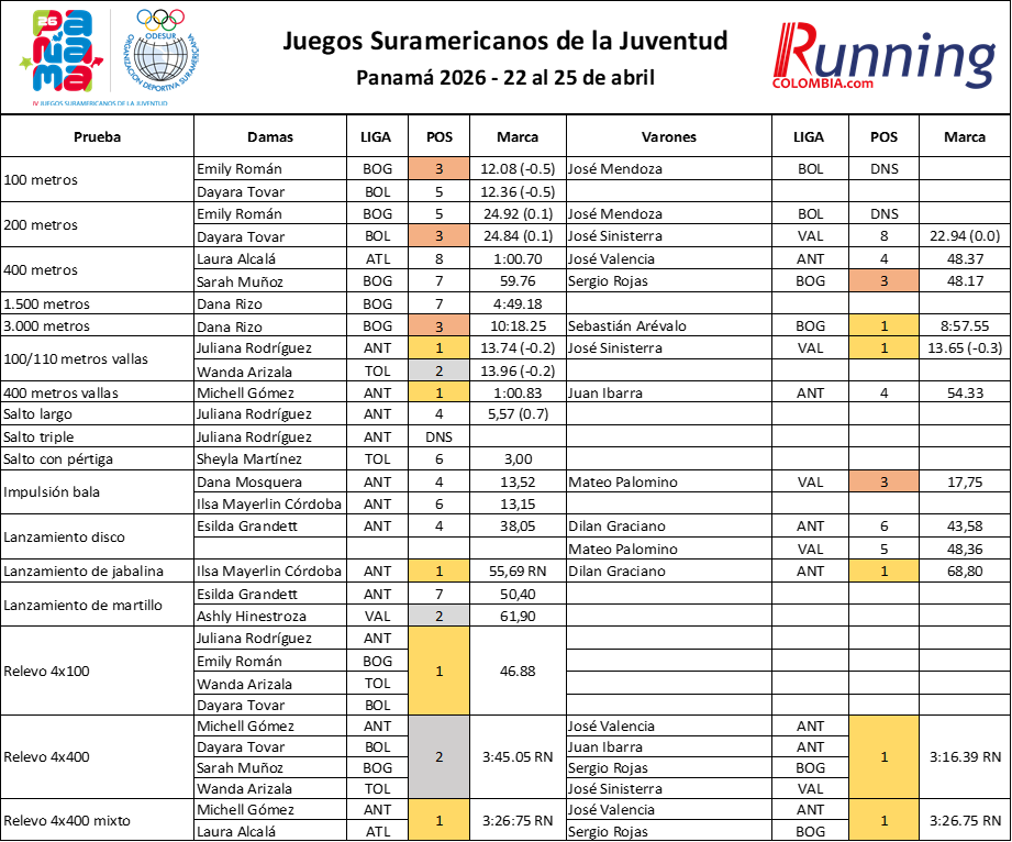 Resultados de cada uno de los colombianos en Panamá 2026: