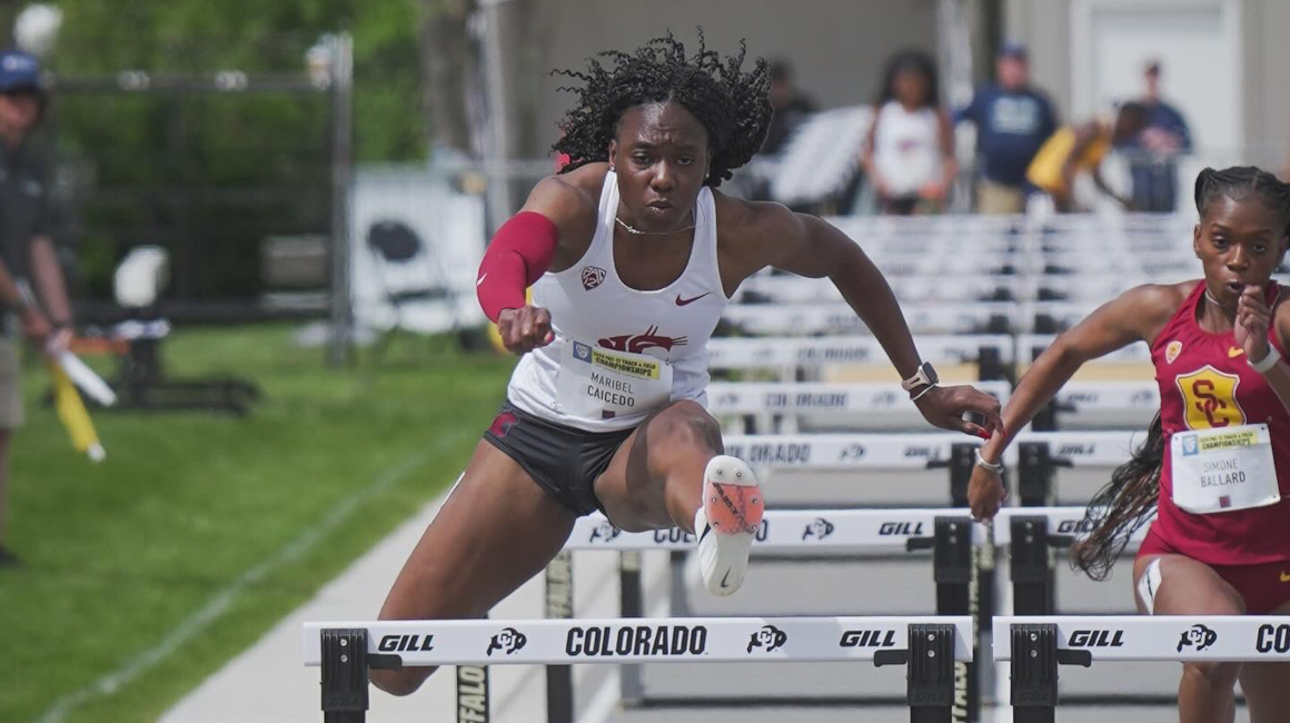 En la final, Caicedo, representante de la Washington State University, terminó segunda, con 12.98, con viento en contra de 2.4 m/s y su compañera Micaela Rosa de Mello (Brasil) terminó tercera con 13.25.