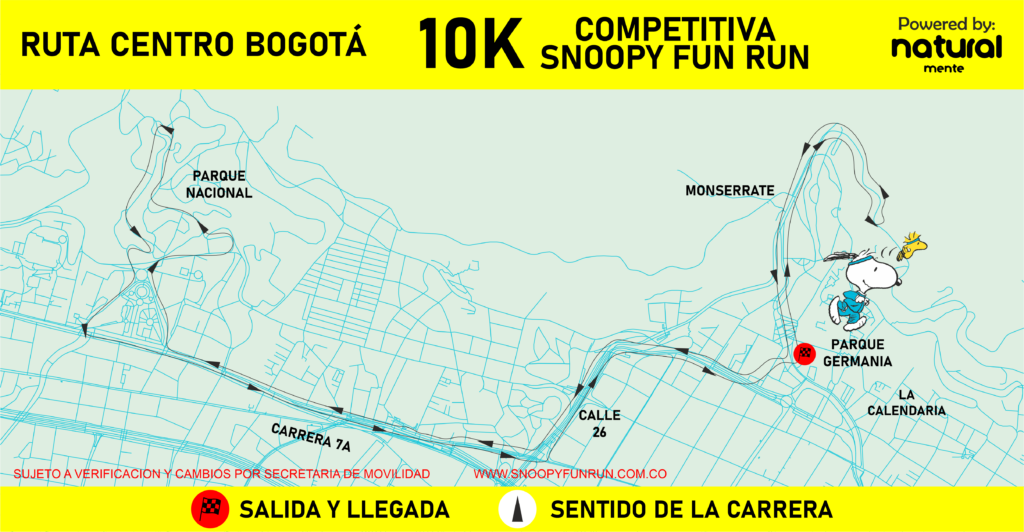 Por último, en la competitiva de 10 kilómetros, para mayores de 18 años, los participantes saldrán igualmente del Paque Germania y harán también el recorrido por la Avenida Circunvalar, pero al bajar por la calle 26 tomarán hacia el norte en busca del Parque Nacional, donde se hará un circuito ecológico para retornar nuevamente por la carrera séptima al punto de llegada.